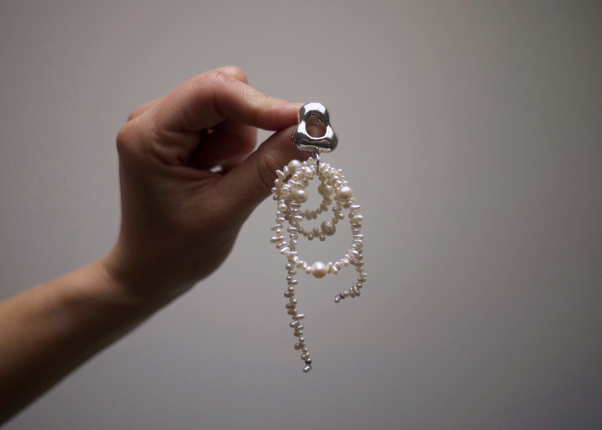 The Aurora Earrings boast a mirror polishing organic sterling silver shape, complemented with subtle dainty and medium-sized freshwater pearls.