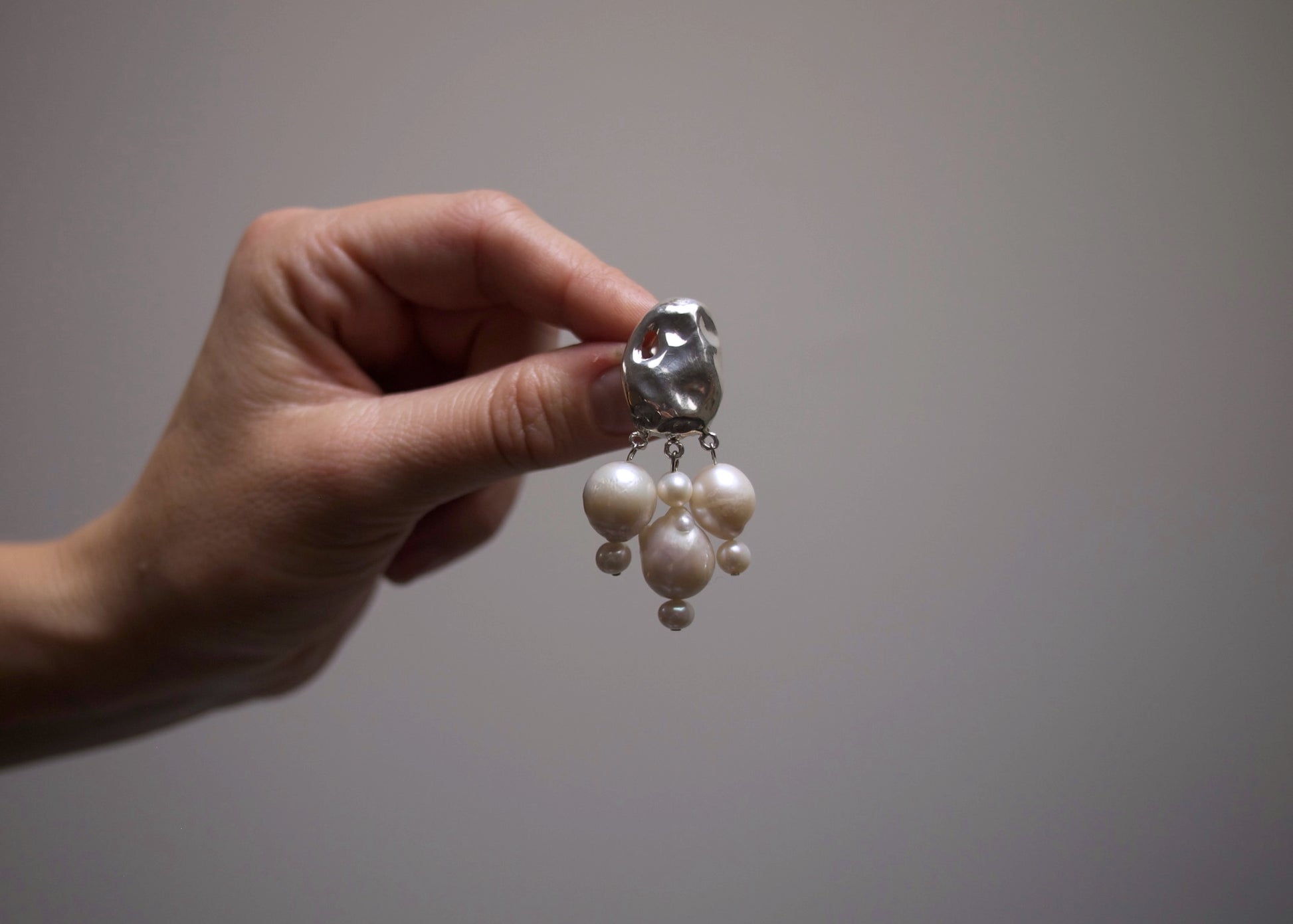 The Beatrice Earrings are an elegant statement piece of the Reverie Baroque Collection. Crafted from sterling silver- both unique and feature each three baroque pearls and four medium fresh water pearls for a stunning look.