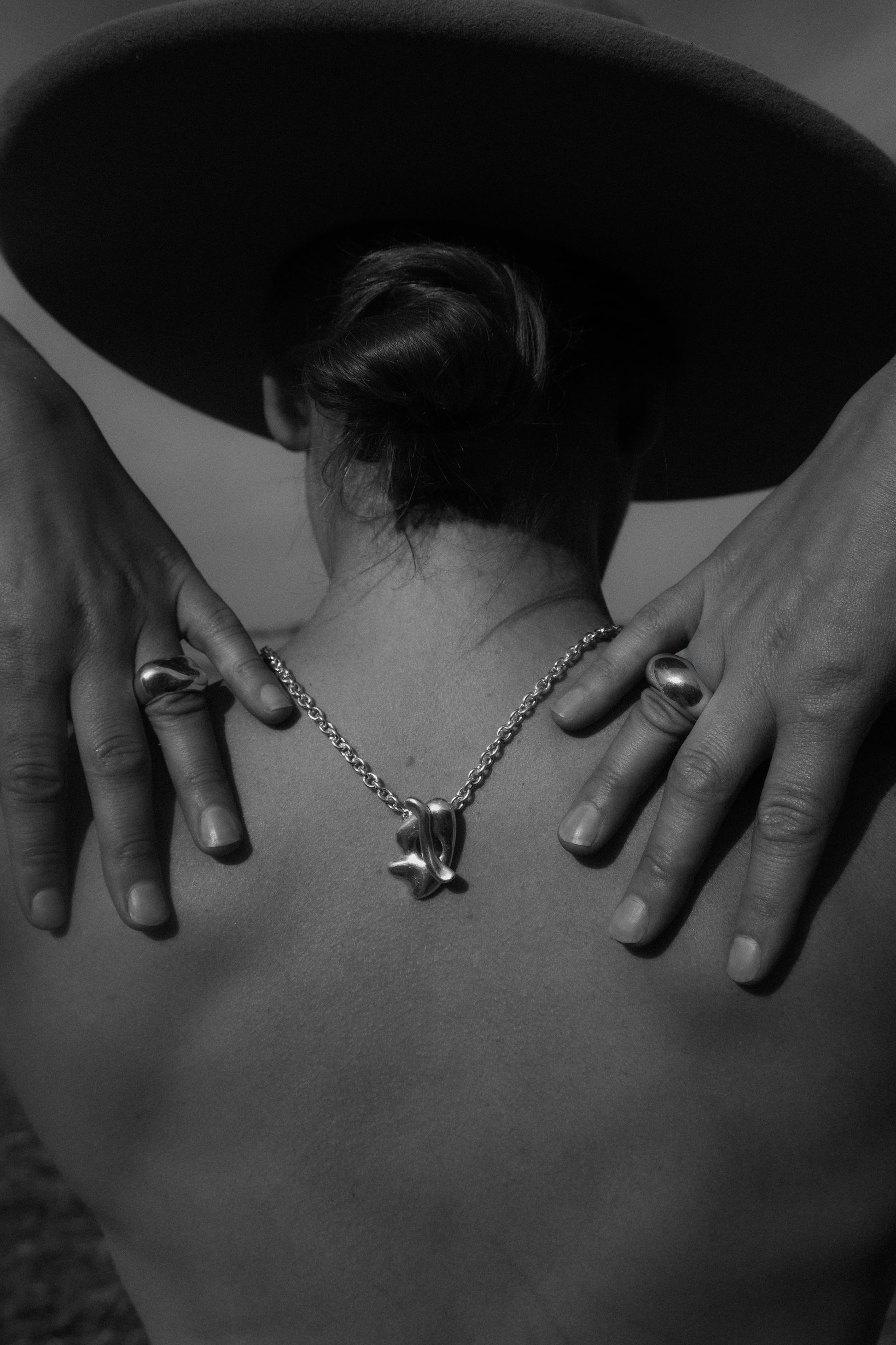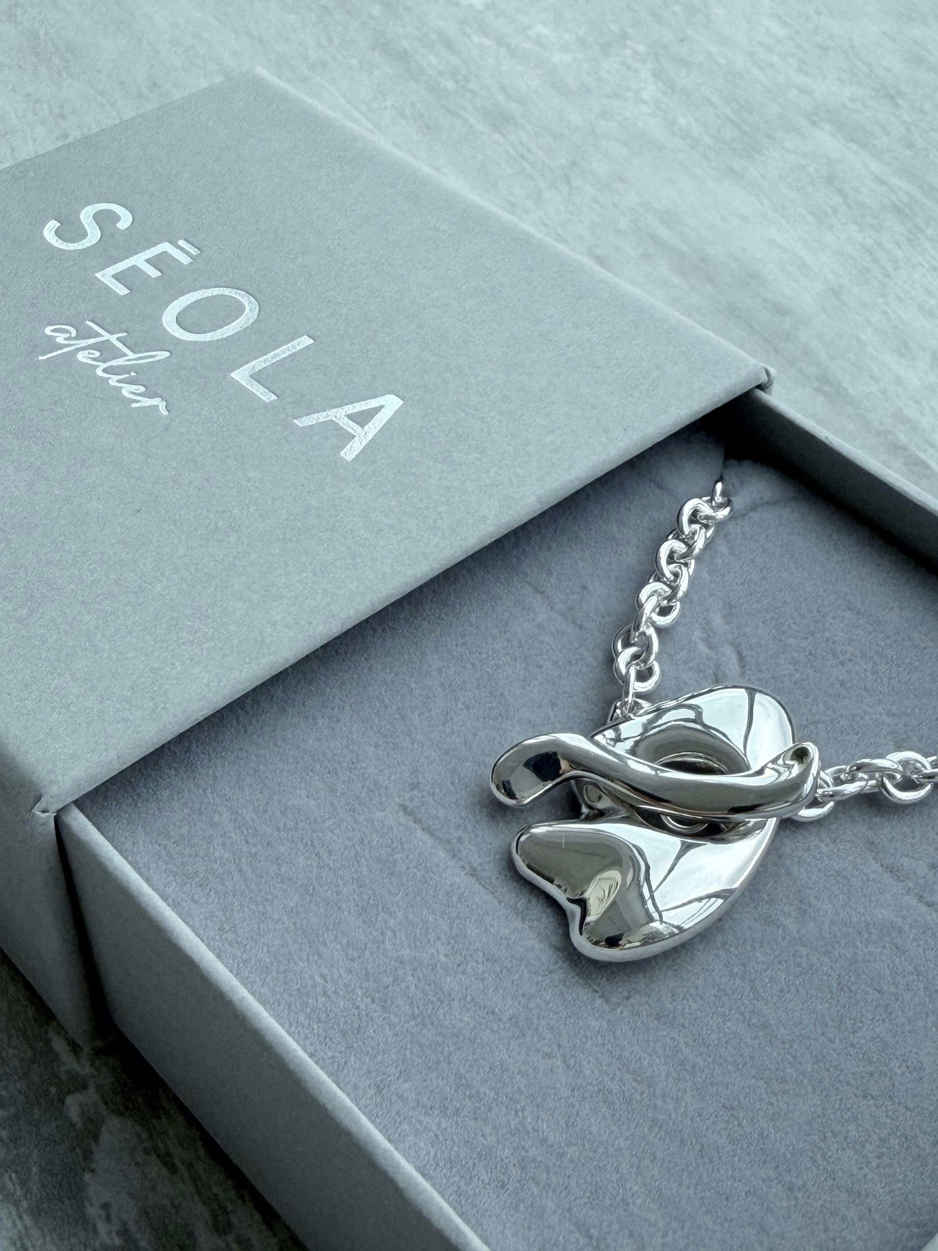 The Freyja silver pendant serves as a locking element, delivering a bold visual statement. Designed with a relaxed style in mind, it refreshes the traditional beaded look by adding a chain, giving it a modern edge.