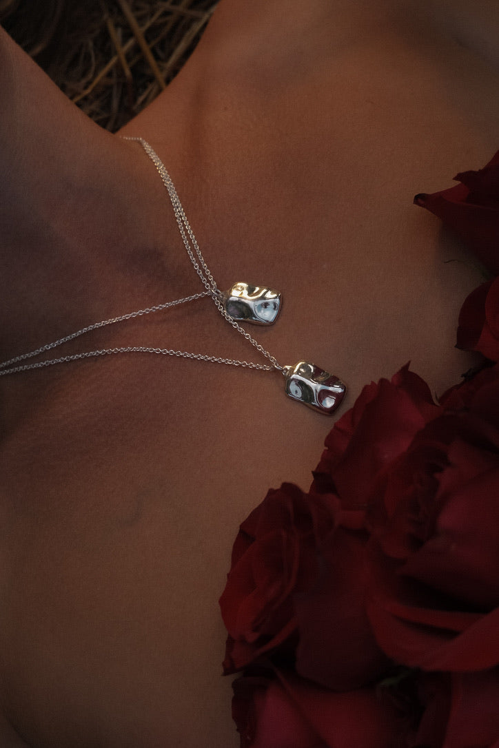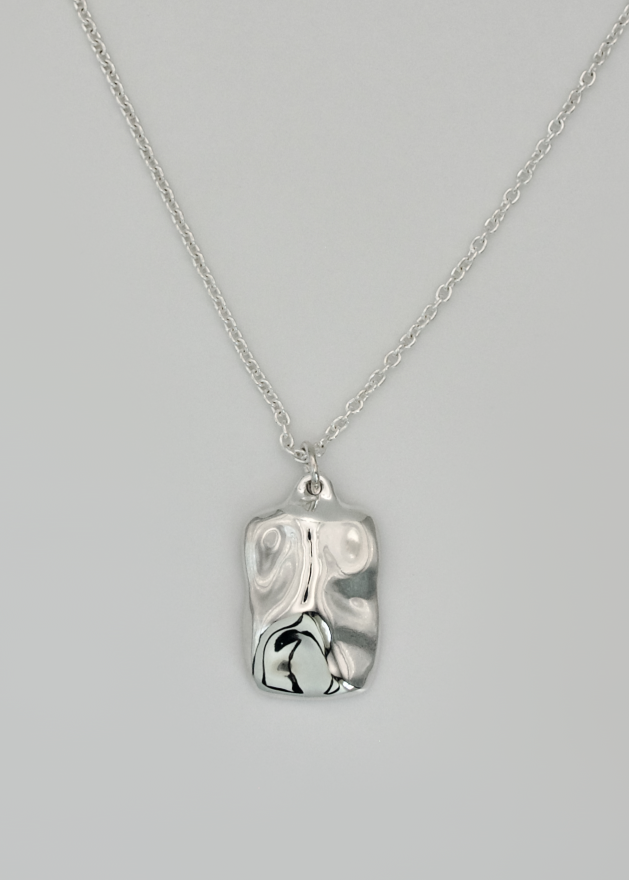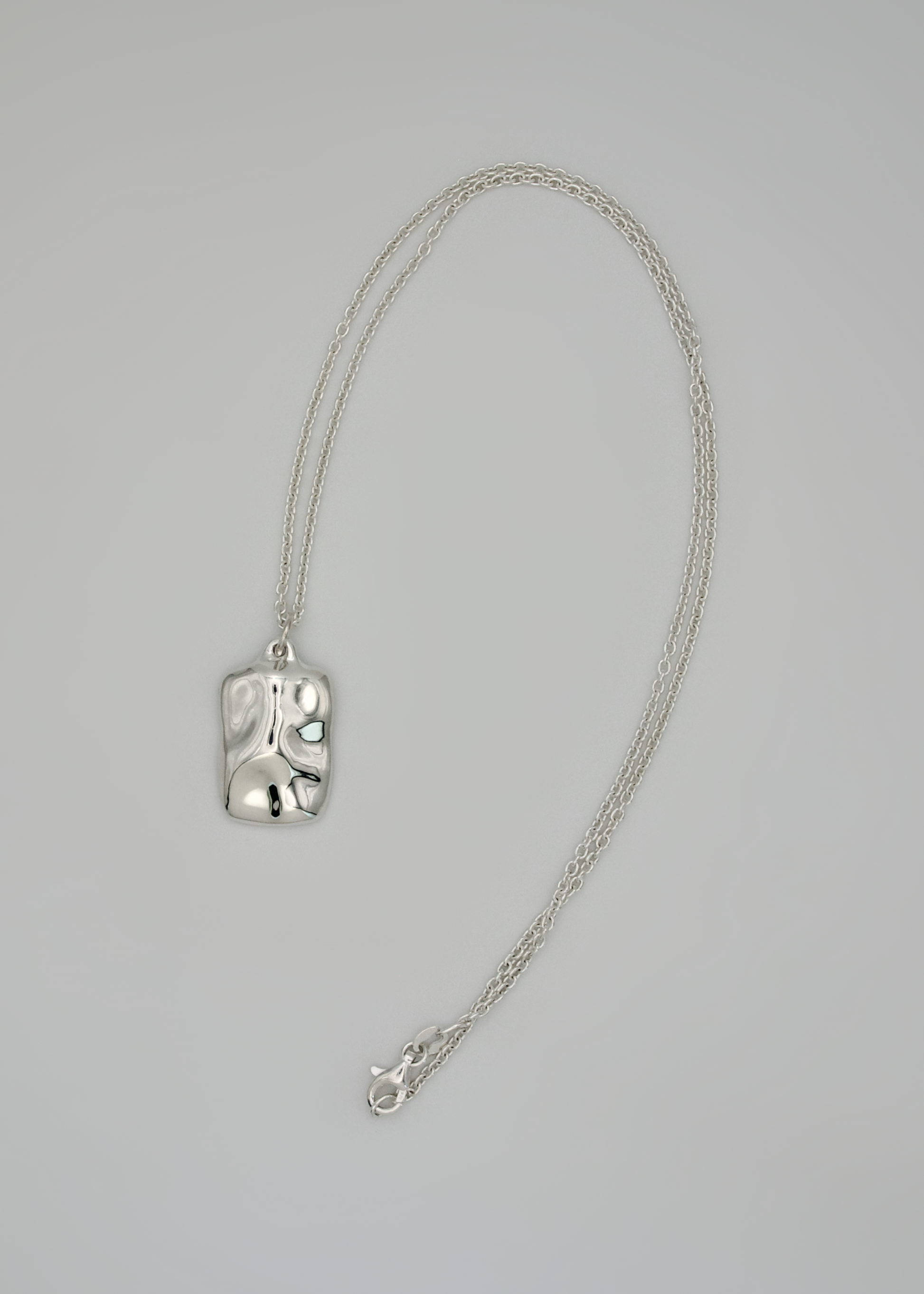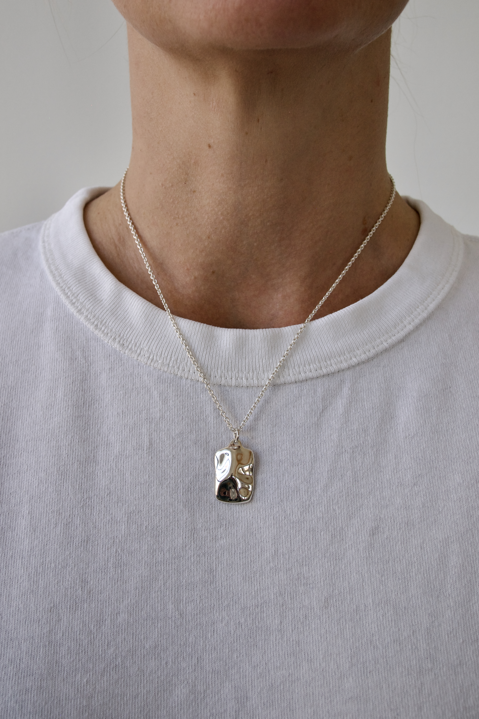 A versatile design, perfect for wearing alone or layering with other necklaces for a sophisticated stacked appearance. Its square form features gentle curves inspired by the contours of snow-covered hills.